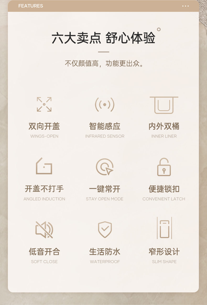 公司創(chuàng)立“潔安惠”品牌(英文“JAH”),正式進(jìn)軍品牌市場(chǎng),以智能感應(yīng)垃圾桶這一產(chǎn)品為主要載體,將家居生活同智能化完美結(jié)合。經(jīng)過(guò)潔安惠人鍥而不舍的努力,公司高端垃圾桶產(chǎn)品線不斷擴(kuò)展與延伸,目前已發(fā)展成為國(guó)內(nèi)知名的高端和智能垃圾桶生產(chǎn)商及品牌商。